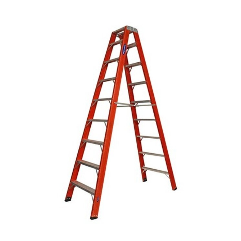 Fabricada em fibra de vidro, não conduz eletricidade, tornando-se adequada para atividades em ambientes com risco elétrico. Seu formato tipo tesoura permite uso autoportante, dispensando apoio em paredes ou estruturas. Possui degraus antiderrapantes, travas de abertura e sapatas emborrachadas, garantindo maior estabilidade e segurança durante a operação.