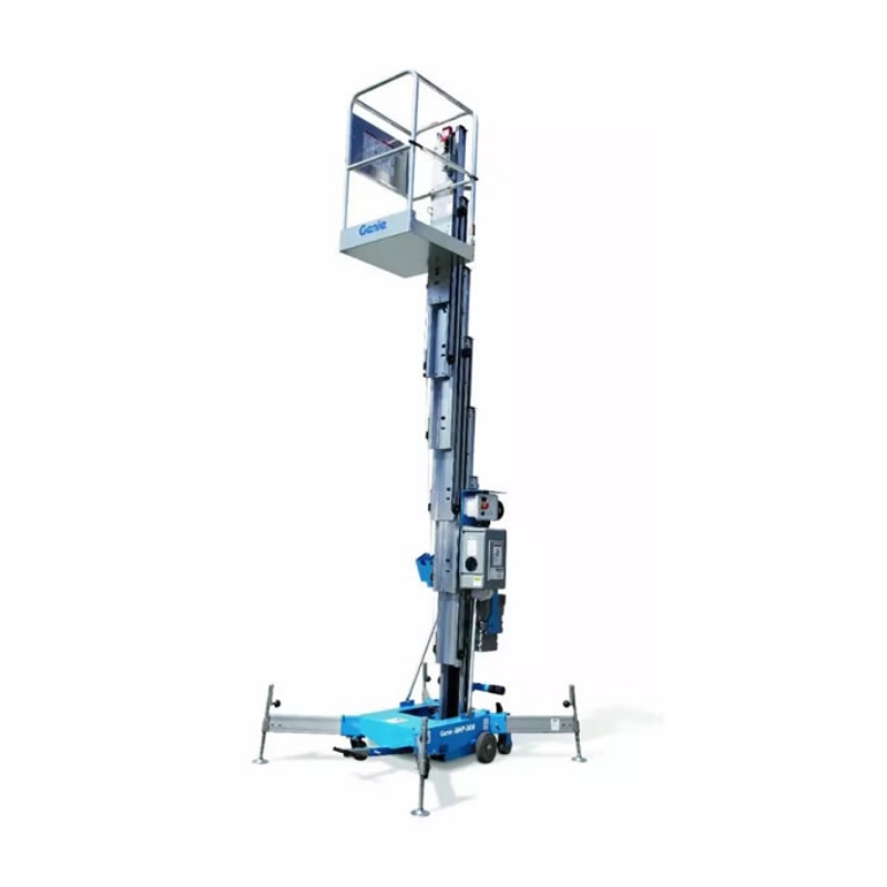 A plataforma elevatória tipo mastro Genie AWP-30S é um equipamento projetado para acesso vertical seguro em trabalhos em altura que exigem precisão e estabilidade. Seu sistema de elevação por mastro permite deslocamento vertical direto, sendo ideal para serviços em locais com espaço reduzido.